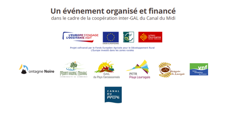 Cet évènement est le fruit d’une coopération entre l’Office de Tourisme de la Montagne Noire, la Communauté de Communes de la Montagne Noire, le GAL Carcassonnais, le PETR du Pays Lauragais, les Voies Navigables de France et est cofinancé par le programme européen LEADER.