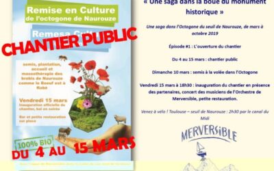 Remise en culture de l’octogone de Naurouze 26 février 2019 La Cie Merversible, en résidence de territoire dans le Lauragais, vous invite à participer au 1er épisode de Une saga dans la boue d’un monument historique, un récit de territoire issu de 12 mois de présence au seuil de Naurouze. Lire la suite