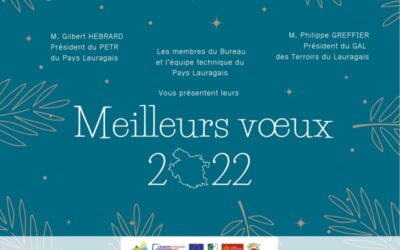 M. Gilbert HEBRARD, Président du PETR du Pays Lauragais, M. Philippe GREFFIER, Président du GAL des Terroirs du Lauragais, les membres du Bureau et l’équipe technique du Pays Lauragais vous présentent leurs #meilleursvœux 2022