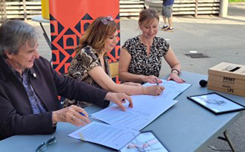 À cette occasion, deux signatures ont eu lieu : celle de la charte du Réseau des Moulins du Lauragais, ainsi que celle d’une convention de collecte avec la Fondation du Patrimoine.