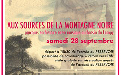 Le samedi 28 septembre, l’association Les Chemins Buissonniers et le RESERVOIR proposent une découverte du bassin du Lampy, ouvrage construit pour alimenter le canal du Midi. Cette visite « Aux sources de la Montagne Noire : parcours en histoire et en musique au bassin du Lampy » est accompagnée par une historienne et une musicienne. Une façon originale de découvrir le patrimoine de la Montagne Noire, mêlant histoire, histoire des sciences et techniques, contes et légendes du territoire et musique traditionnelle au son de la BODEGA,instrument de musique traditionnel de la famille des cornemuses.